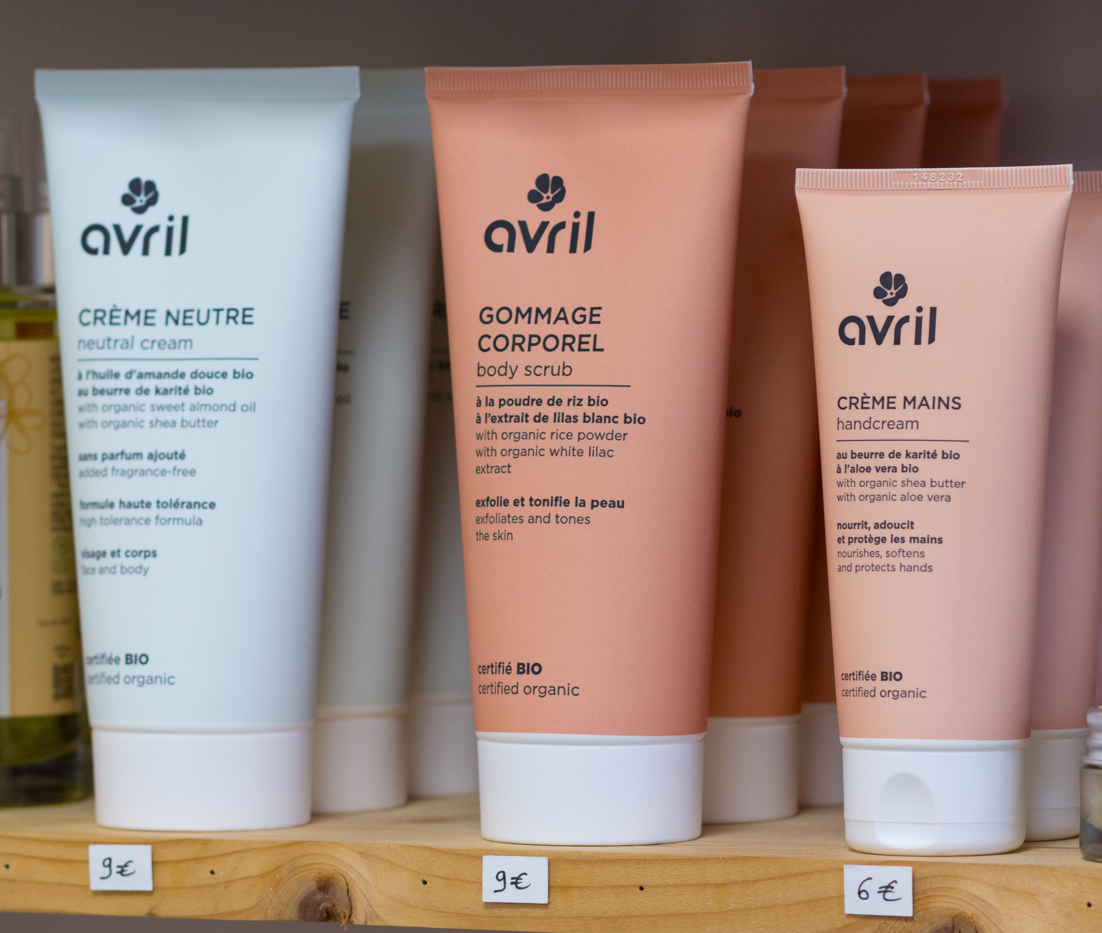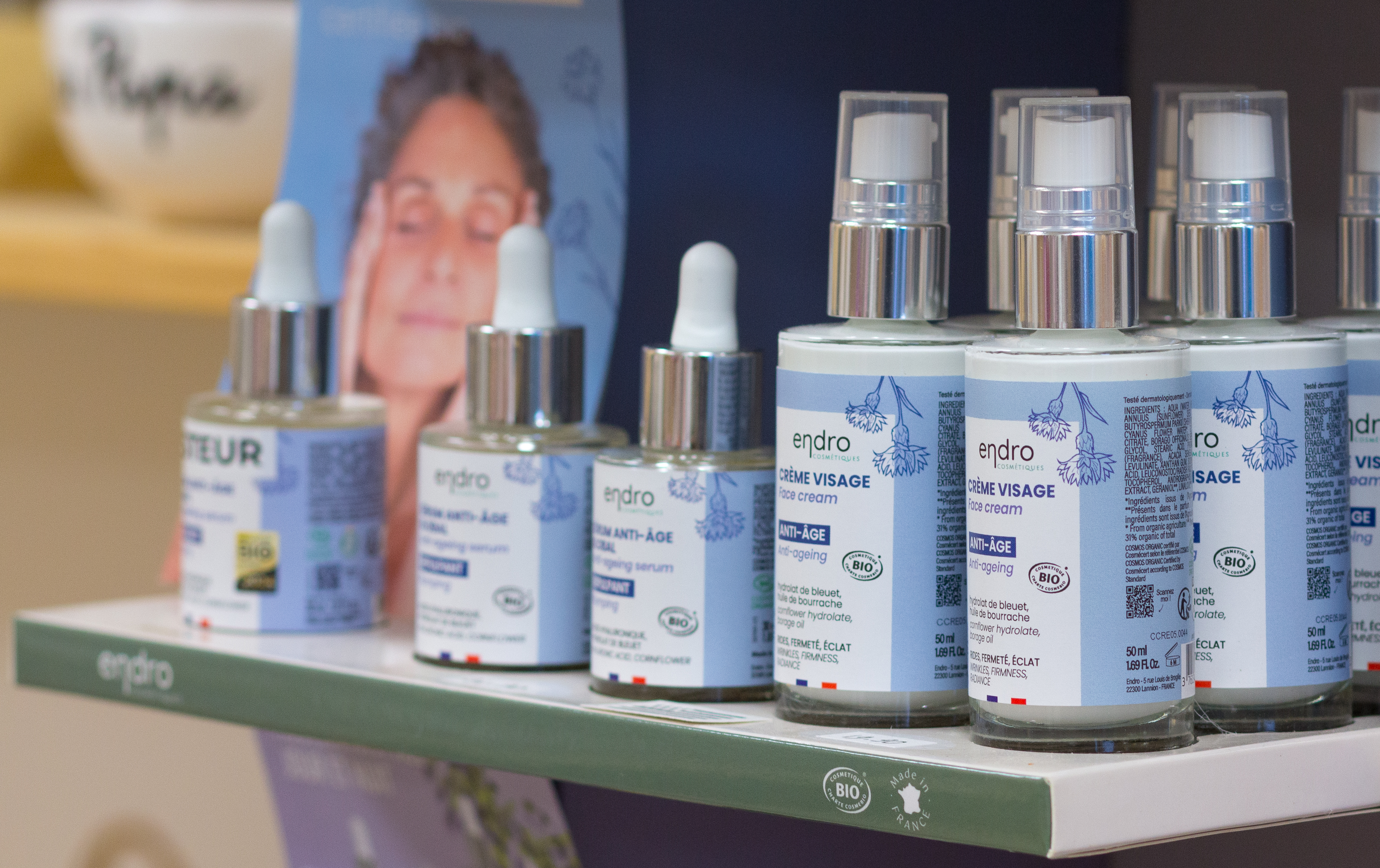 A la boutique, sont vendues des marques de cosmétiques uniquement françaises (majoritairement bretonnes)